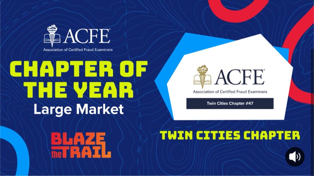The Twin Cities Chapter of Certified Fraud Examiners (TCCCFE) is honored to announce that we have been awarded the ACFE Chapter of the Year Award – Large Market for 2025.